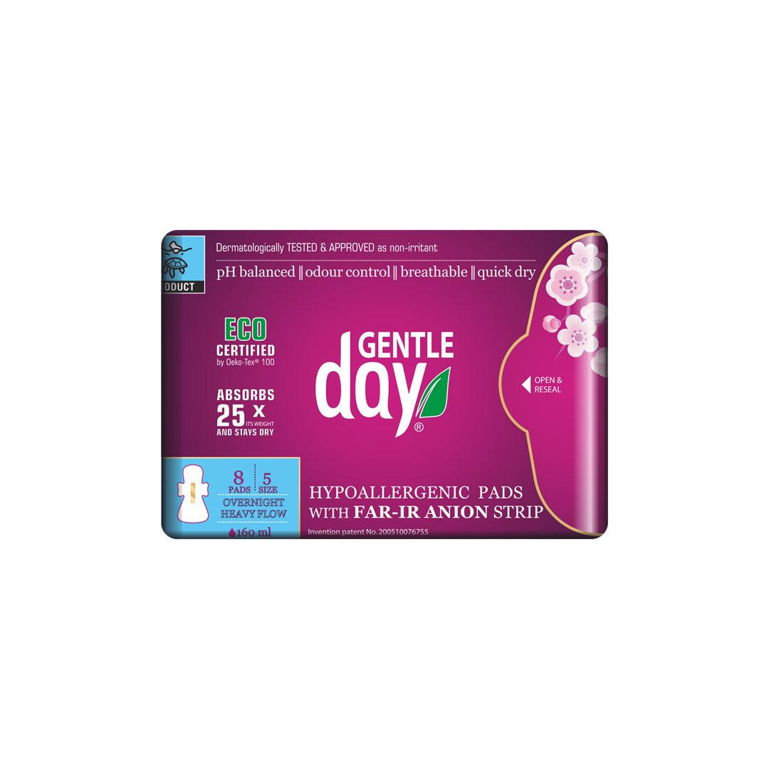 PODPASKI HIGIENICZNE Z PASKIEM ANIONOWYM NA NOC 8 szt. – GENTLE DAY