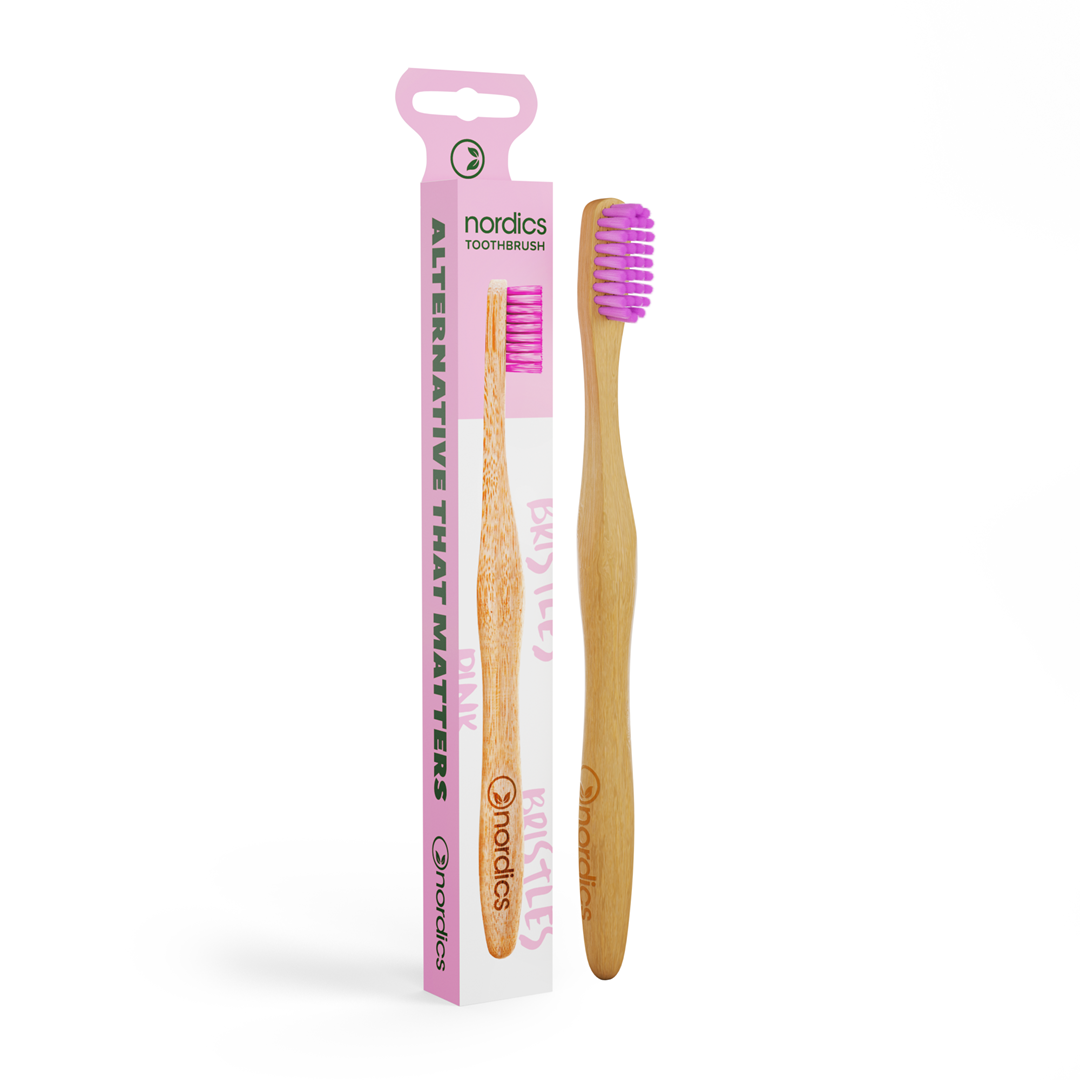SZCZOTECZKA DO ZĘBÓW BAMBUSOWA RÓŻOWA ŚREDNIO TWARDA – NORDICS