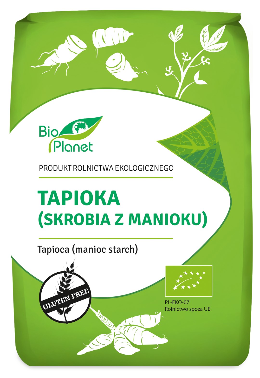 Ekologiczna tapioka pozyskiwana jest z bulw korzeniowych manioku. Nie posiada charakterystycznego smaku i zapachu, w związku z czym nie zmienia smaku potraw. Polecamy do wypieku placków, chleba, ciast, ciasteczek. Można ją dodać do kisieli, budyni, puddingów, przetworów MLECZNYch i owocowych. Doskonała również jako zagęszczacz do zup, sosów, musów.