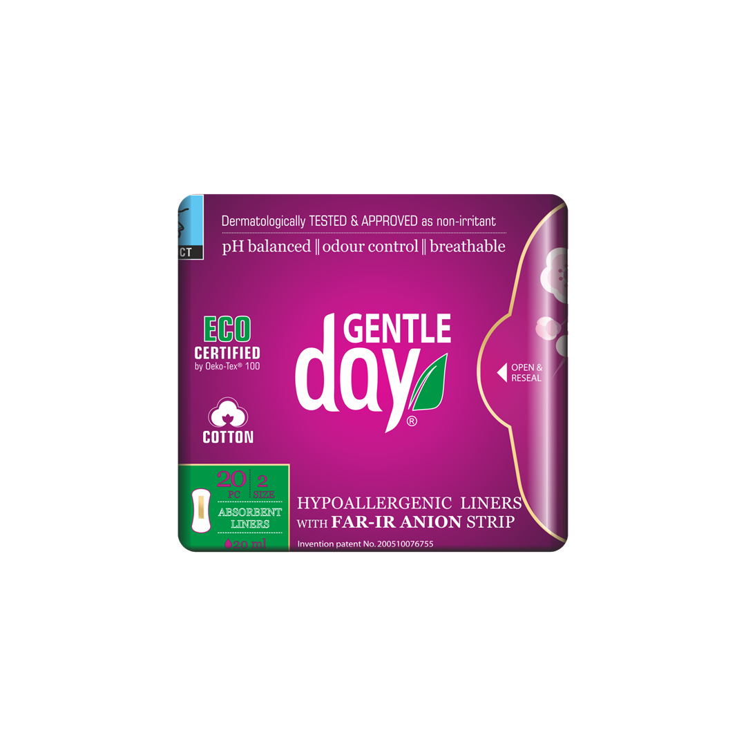 WKŁADKI HIGIENICZNE Z PASKIEM ANIONOWYM I WARSTWĄ WCHŁANIAJĄCĄ WILGOĆ 20 szt. – GENTLE DAY