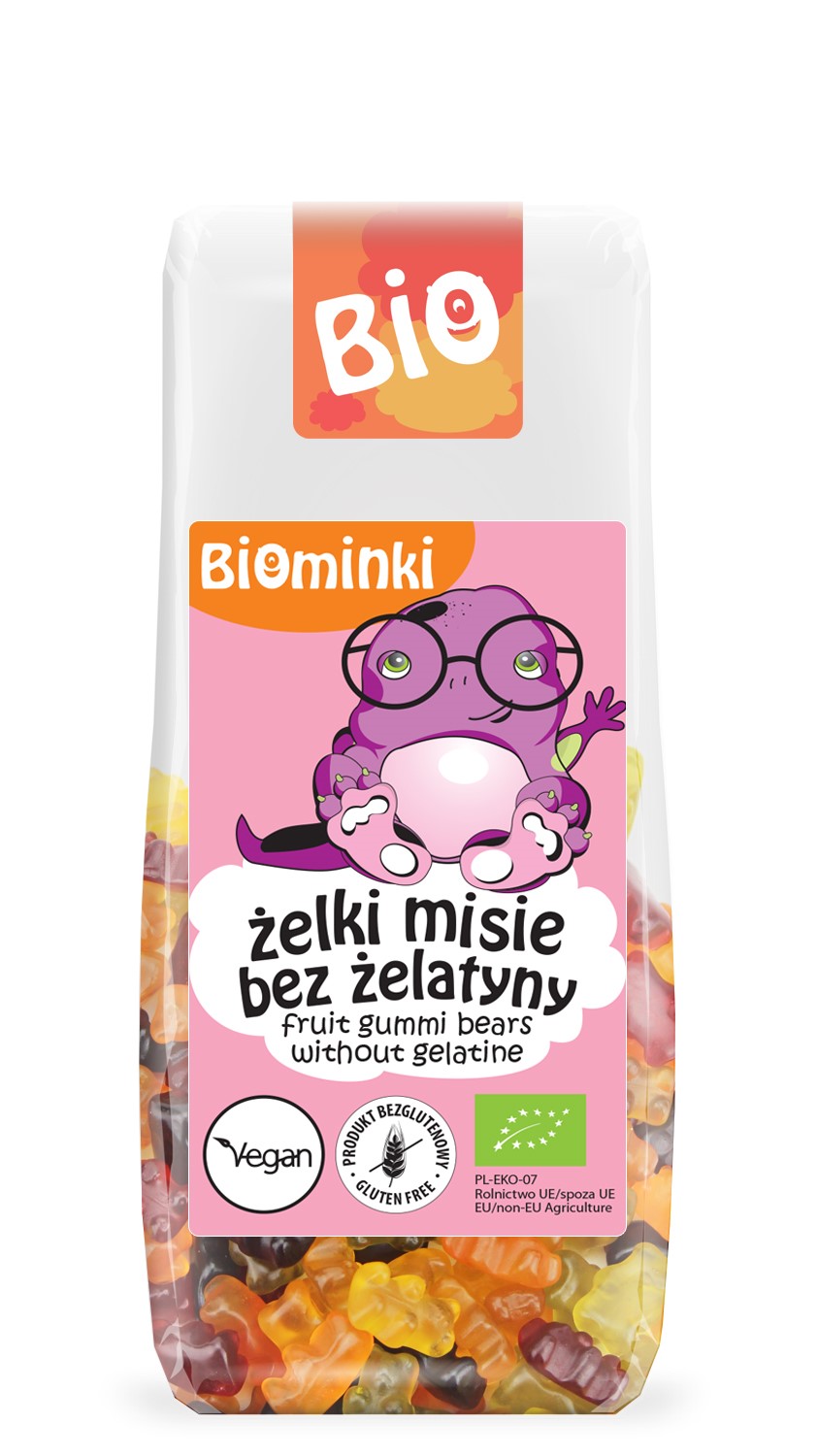 ŻELKI MISIE BEZ ŻELATYNY BEZGLUTENOWE BIO 100 g – BIOMINKI